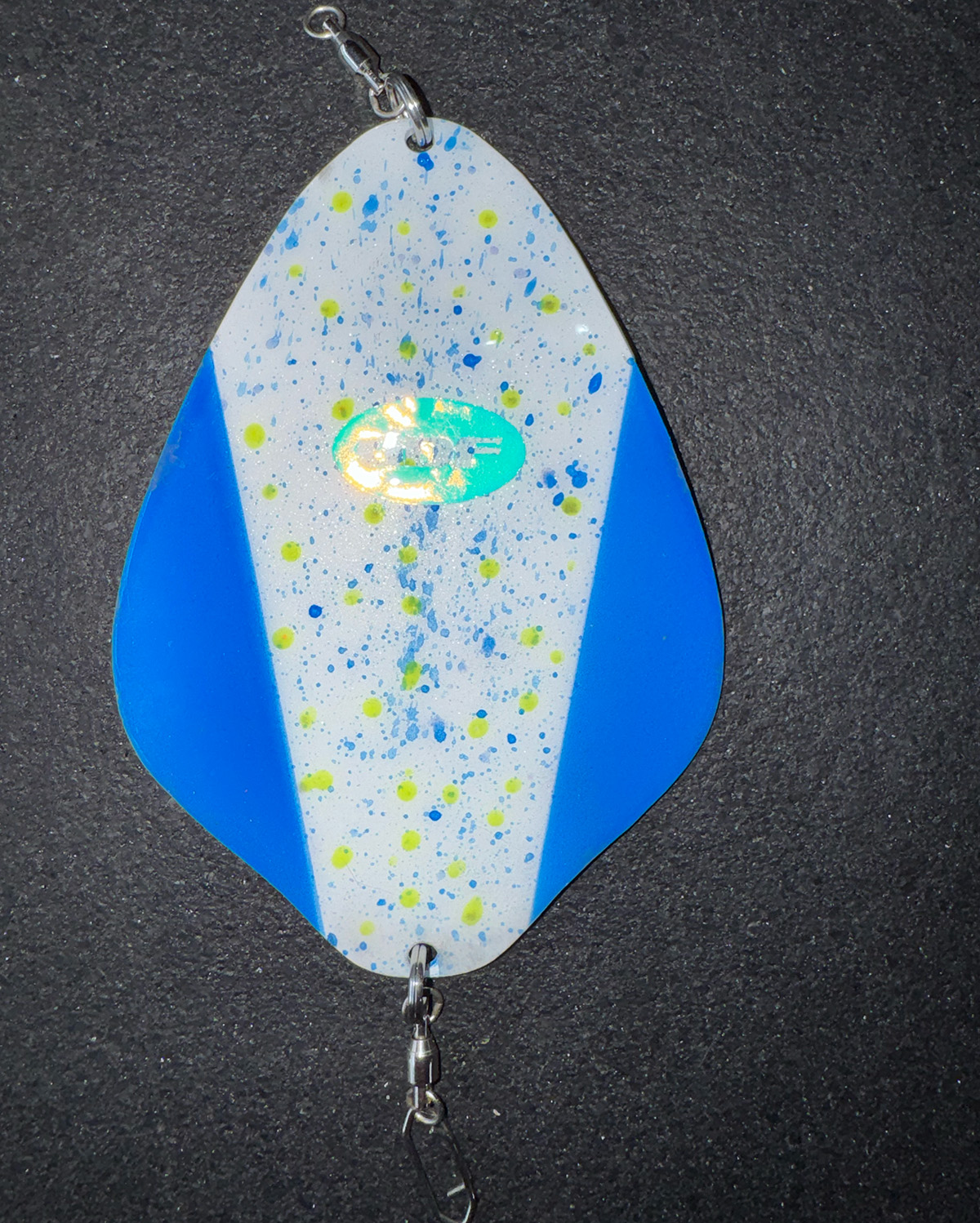 Tune setup by adjusting leader length to adjust desired action. Video was taken with 8” 10# mono leader to hoochie w/ (2) #2 hooks.