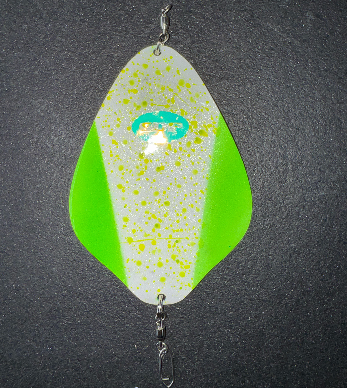 Tune setup by adjusting leader length to adjust desired action. Video was taken with 8” 10# mono leader to hoochie w/ (2) #2 hooks.